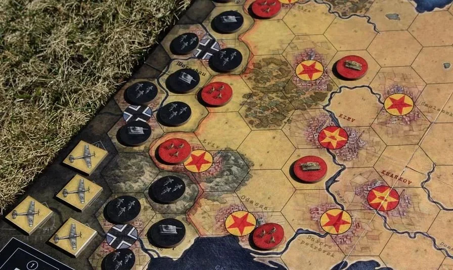 The Axis player must take advantage of the early initiative and air superiority to seize control of the key locations in the heart of the Soviet Union. Using Convoy movement to strike fast at the central cities of Kiev and Kharkov, and to Blitz onwards towards Stalingrad, the fortress city of Sevastopol and the industrialised South. In the North, Leningrad offers the chance to open a supply route into the countryside and advance into Moscow itself. To capture Stalin is to end the war early.