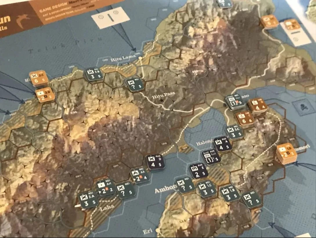 After a couple of hours, sometimes earlier, the battle is resolved. Often, we could see if the Japanese player would be the winner a few turns before the end-game. Ambon is not an innovative game, but what it does, it does well, and interestingly tweaks a well-established formula. If you are looking for an engaging, fast and beautiful hex and counter game on an unusual topic, look no further, this is for you.